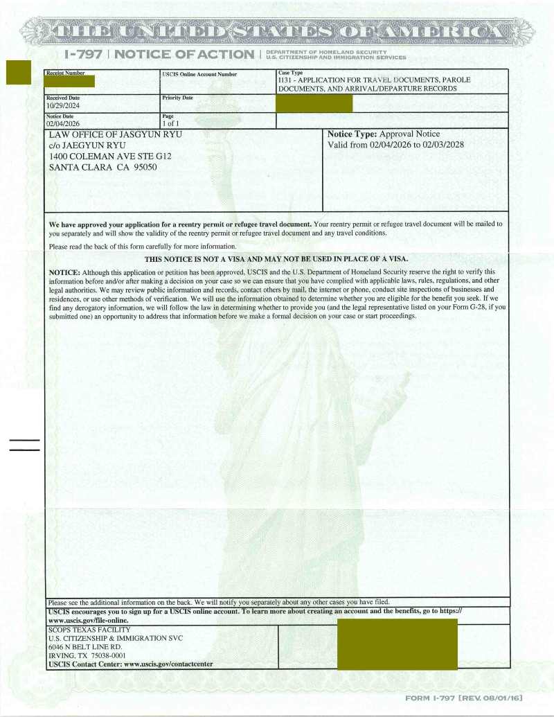 재입국 허가서 승인날짜: 2026년 2월 4일