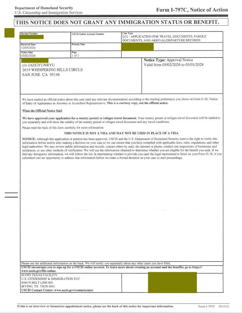 재입국 허가서 승인날짜: 2025년 3월 2일