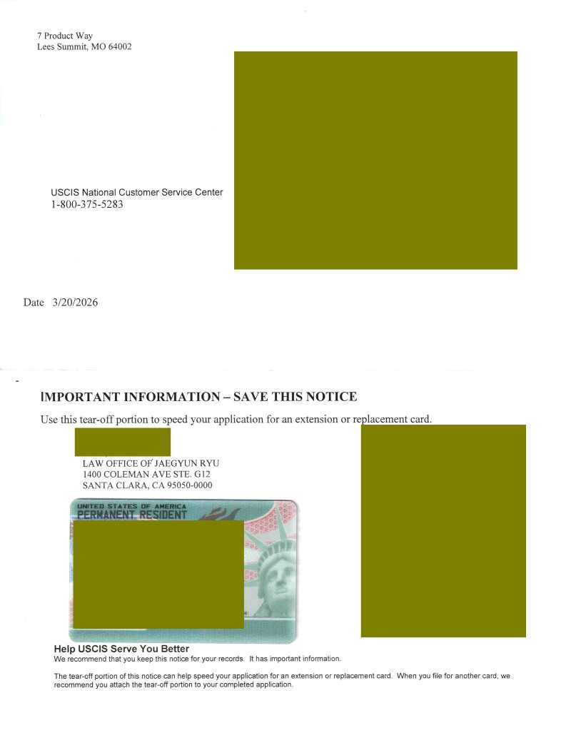 *  승인서는 못받았으며, 갱신된 영주권 카드를 받았습니다.