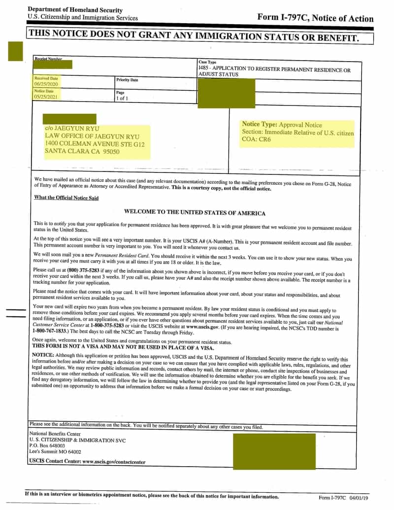 영주권 승인 날짜: 2021년 5월 25일