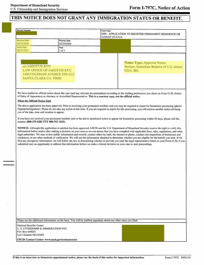 영주권 승인 날짜: 2021년 6월 22일