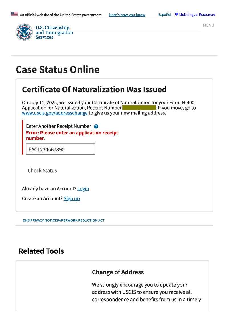 시민권 선서식 날짜: 2025년 7월 11일, LA, CA