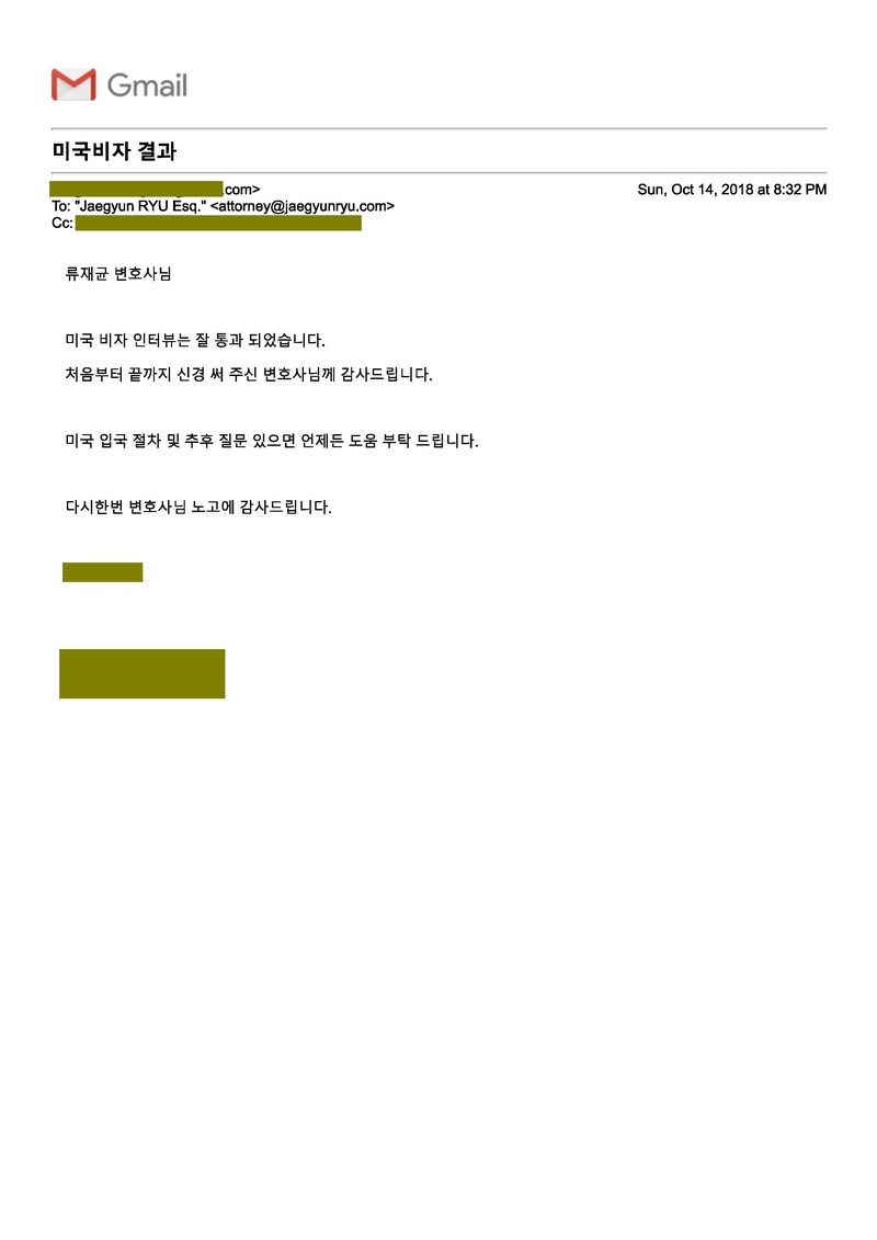 영주권 비자 승인 날짜: 2018년 10월초 (약 6개월)