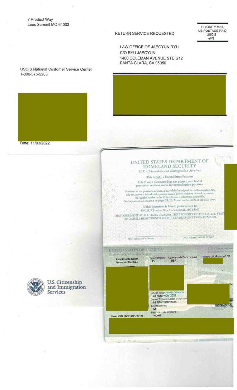 재입국 허가서 (Reentry Permit) 신청하여 승인된 케이스 (약 1년 5개월, 지문생략) 재입국 허가서 (Reentry Permit) 신청하여 승인된 케이스 (약 1년 5개월, 지문생략) 영주권을 취득한 후에 한국에 1년 이상 2년까지 머무르기 위해서 재입국허가서 (Reentry Permit)을 신청하여 승인받은 경우입니다. 재입국 허가서 접수날짜: 2021년 6월 1일 지문날인 날짜: 생략됨 재입국 허가서 승인날짜: 2022년 11월 2일 류재균2022-11-18T13:50:55-08:00
