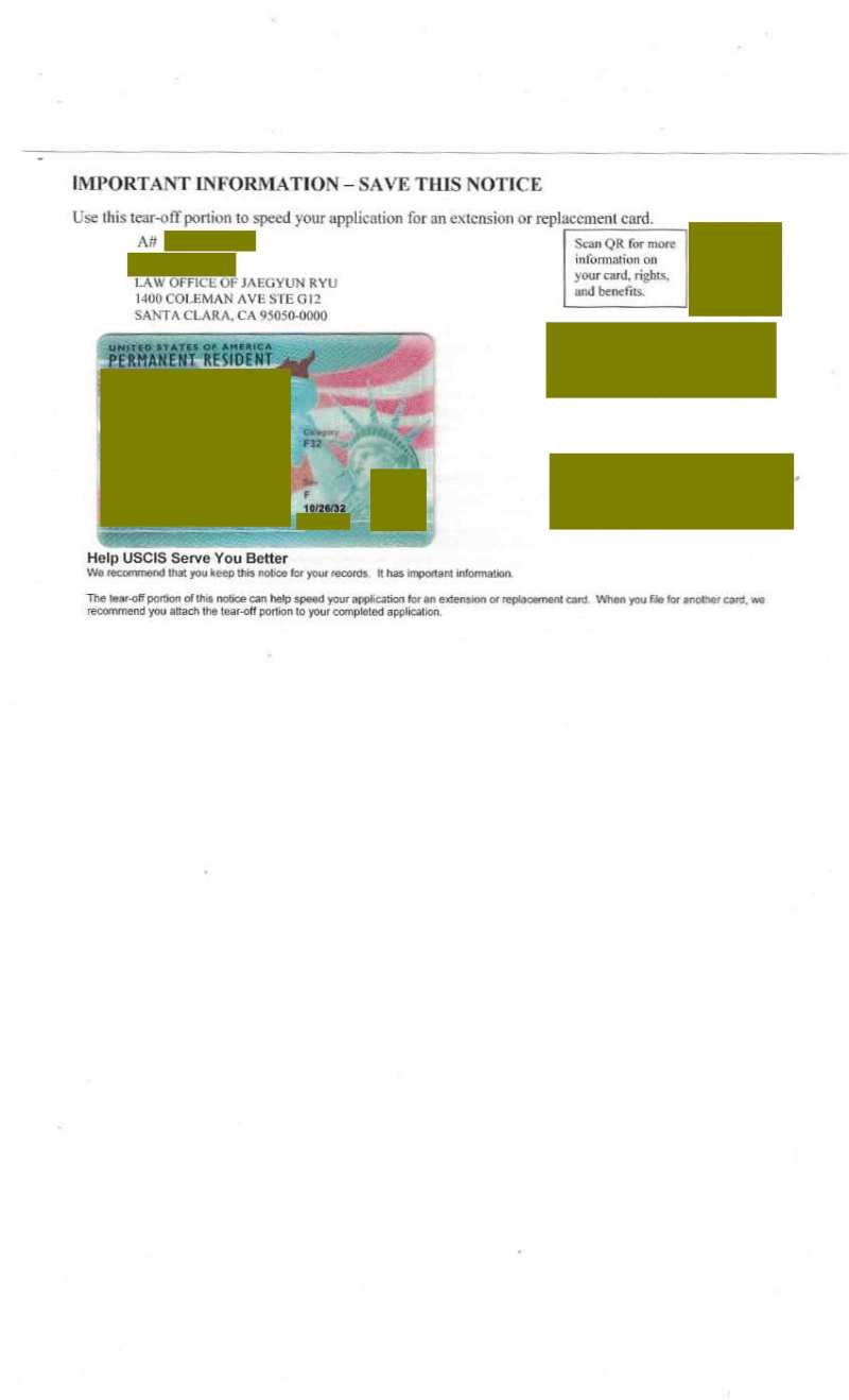 영주권 갱신 신청하여 승인된 케이스 (약 1년 9개월, 지문면제) 영주권 갱신 신청하여 승인된 케이스 (약 1년 9개월, 지문면제) 영주권 갱신 신청을 하여 승인받은 케이스입니다. 영주권 갱신 서류 접수 날짜: 2021년 2월 10일 지문날인 날짜: 생략됨 승인 날짜: 2022년 11월 7일 * 고객의 개인정보는 가렸습니다. 류재균2022-12-05T15:25:46-08:00