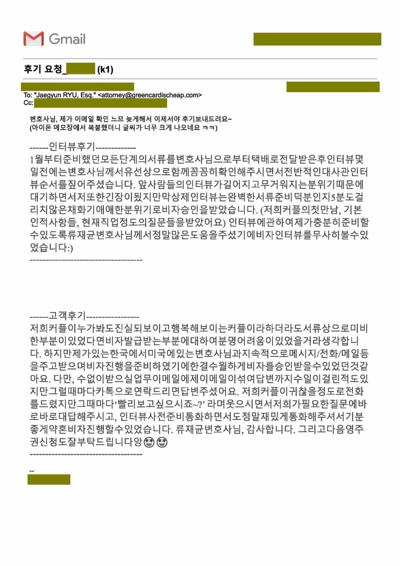 시민권자와 약혼하여 약혼비자 승인된 케이스, 인터뷰 후기 미국 시민권자와 약혼으로 주한 미국 대사관에서 약혼비자를 승인받으시고 고객이 올려주신 인터뷰 후기 입니다. 류재균2021-04-03T03:13:16-07:00